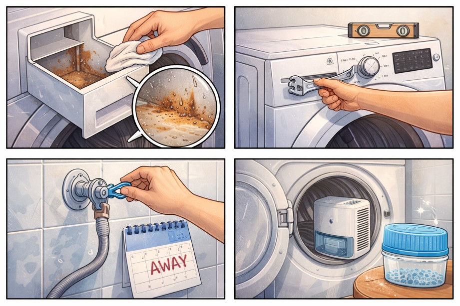 In my home, the washing machine once developed small rust marks near the lid because water droplets were left on the surface after washing. After making it a habit to wipe the machine dry and improve airflow around it, the rust problem stopped and the appliance stayed cleaner.
